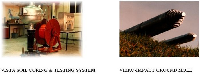 Vibro-Impact Ground Moling System: Two inventions are associated with this: a vibro-impact driver and an artificial intelligence based dynamic soil signature recognition system. Taken together these comprise the first intelligent system for ground moling which supplies the operator with real-time information on hazards ahead of the mole.