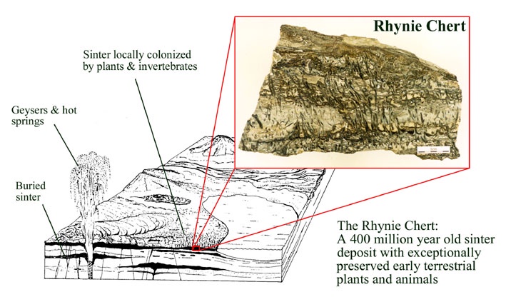 This web site is designed as a learning and teaching resource based on the Rhynie chert, a rock formation from northeast Scotland that contains a superbly preserved 400 million year old terrestrial and freshwater flora and fauna. The site is designed to be of greatest value for Honours Geology students but can be used by anyone with an interest in earth or life sciences. The site comprises two main components: