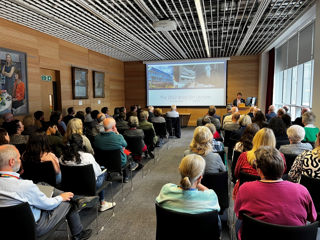 The Boyd Orr lecture was delivered by Sir Stephen O’Rahilly MD FRS FMedSci, Professor of Clinical Biochemistry and Medicine, Director, MRC Metabolic Diseases Unit, Wellcome-MRC Institute of Metabolic Science, University of Cambridge and covered obesity and related health implications.