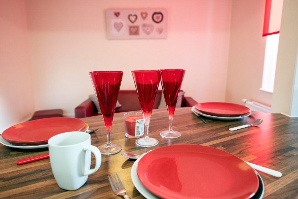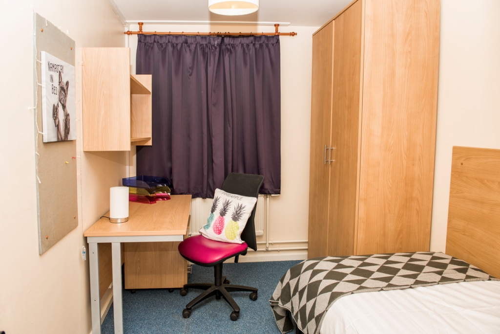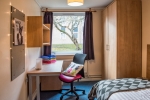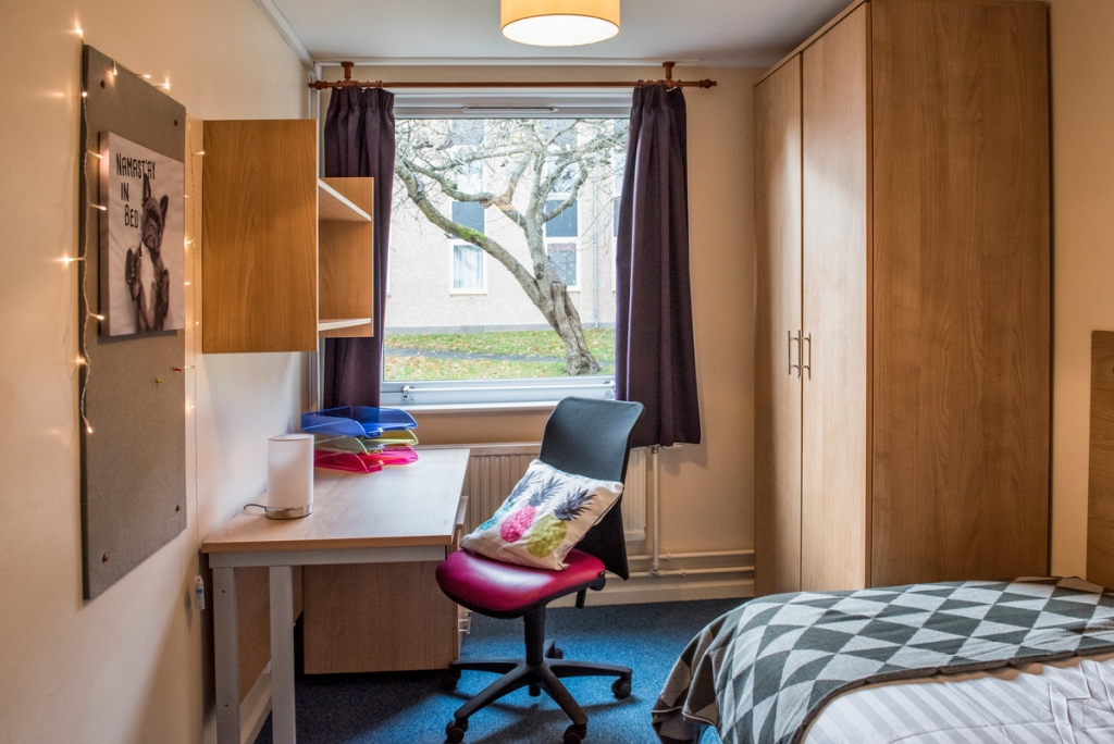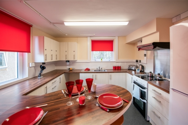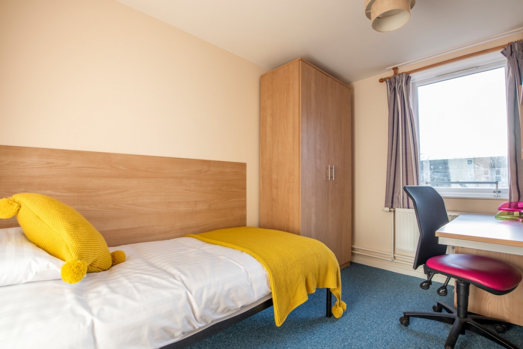 Self catering flats for 5 persons, single study bedrooms, single beds, with shared kitchen and bathroom facilities. Please note that there are flats with 1 shared toilet and a shower and flats with 2 shared toilets and a shower.