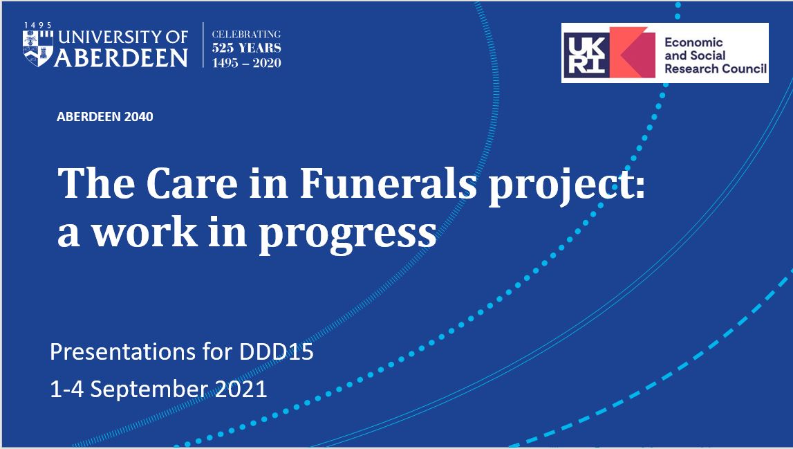 Five members of our team attended the 15th international conference on the Social Context of Death, Dying and Disposal (DDD15), which was held online from 1st – 4th September 2021. In this blog, we share the updates on work in progress that we presented at the conference.