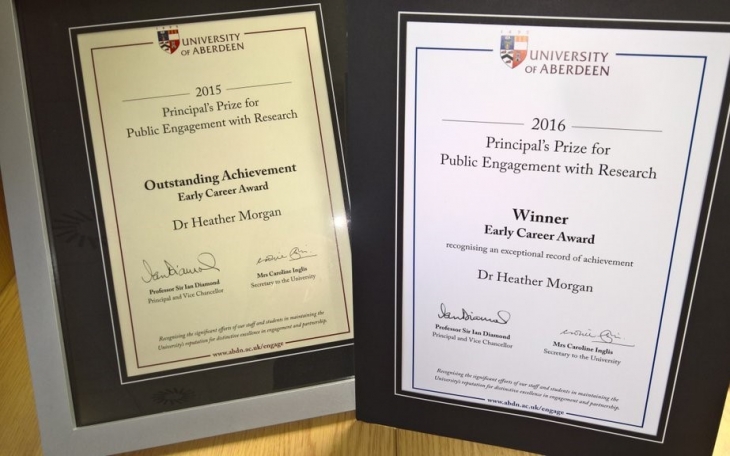 Heather Morgan was awarded a Principal’s Prize for Public Engagement with Research 2017, Outstanding Achievement (Early Career Award), last week. This follows prizes in both 2016 and 2015.