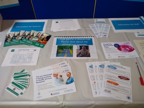 This year our Clinical Trials Unit (CHaRT) and HSRU celebrated all week at a stall at the Aberdeen Royal Infirmary alongside colleagues from NHS Grampian Research Awareness team. Our teams spoke to patients, visitors and staff about the importance of clinical trials, the research we do to improve healthcare, and the training we offer to researchers such as the Real World Trials Online Course.