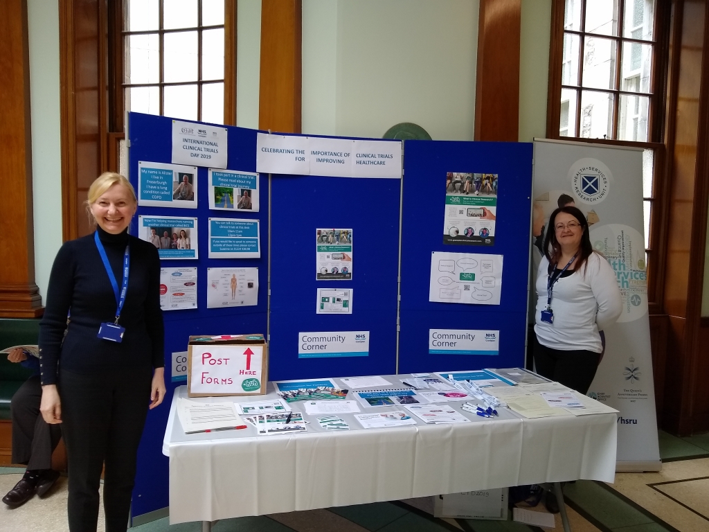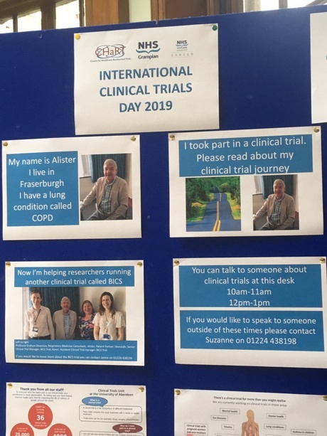 The information included Alister’s personal research story – how, having taken part in one of our clinical trials TWICS for patients with a lung condition called COPD, he is now part of the team overseeing a new clinical trial called BICS – also researching COPD. Alongside representatives from Heart and Chest Scotland, he gives a patient perspective of COPD and of taking part in research.