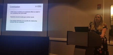 Finally Tuesday afternoon saw Marion Campbell, Katie Gillies, Jan Jansen, ex HSRU’er Jonathan Cook and long time collaborator and friend of the Unit David Beard deliver an invited session on the role of the expertise-based design for surgical trials. Marion introduced the design, with Jonathan talking through some key considerations for analysis, Katie talked through some exploratory work with stakeholders on key concerns and opportunities, and then David presented TOPKAT as an example of an expertise based design in practice.