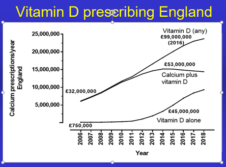 He presented a slide on the relentless increase in vitamin D prescribing in England (and the same applies to Scotland), despite the lack of benefit.