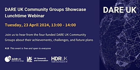 This lunchtime public webinar offers a platform for the four DARE UK Community Groups to showcase their accomplishments, address challenges encountered, outline future plans, and engage with participants through Q&A.