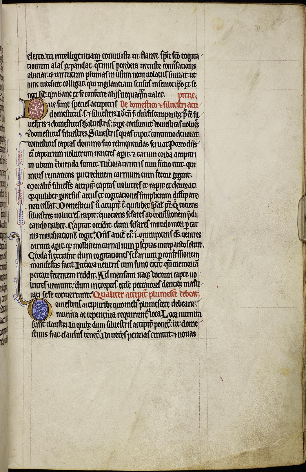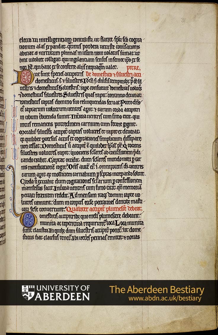 Domestic and wild hawks; how the hawk should moult. Missing letters in rubric [Acci]ptre, with a red rubricator's reminder on right edge. Initials type 2.