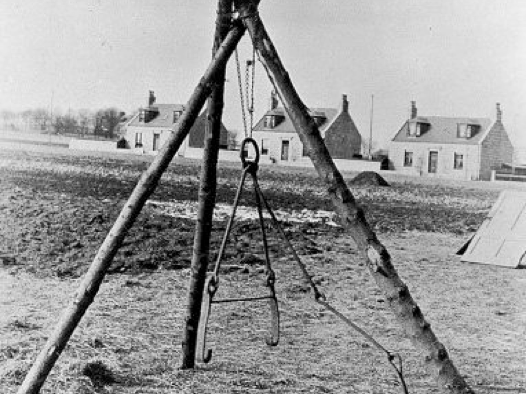The mortstones were intentionally made very heavy to prevent their removal or destruction by unauthorised persons who might wish to gain access to the bodies they protected. Therefore for lowering them into position on the grave at the time of burial, and for lifting them out again when all danger of body-snatching was past, strong tackle was required. The tackle formerly used in the church yard of Inverurie is still in existence and in good order. It had been stored on the premises of Mr Gray, baker, Inverurie, whose shop and dwelling-house were at the south end of the town, not far from the churchyard. This was a very suitable place for its safekeeping, not only because it was convenient for the churchyard, but because, on the premises of a baker, it would be under observation both by day and night.