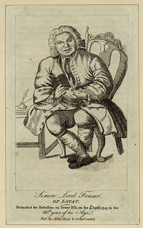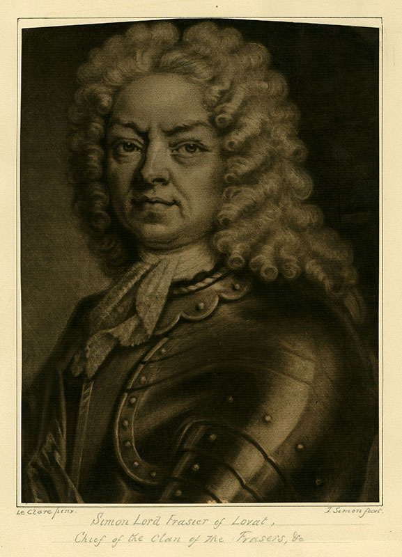 son of Simon, 12th Baron Lovat, by his father's instructions headed the Frasers in support of Prince Charles Edward; DNB; (a) J Watson; (e) M Rosenthal; 9 x 7 cms.