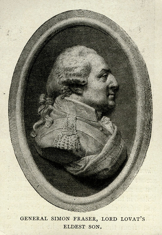son of Simon, 12th Baron Lovat, by his father's instructions headed the Frasers in support of Prince Charles Edward; DNB; (a) A Smith after a model by I Tassie; 8.3 x 6 cms.