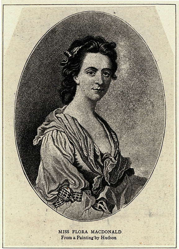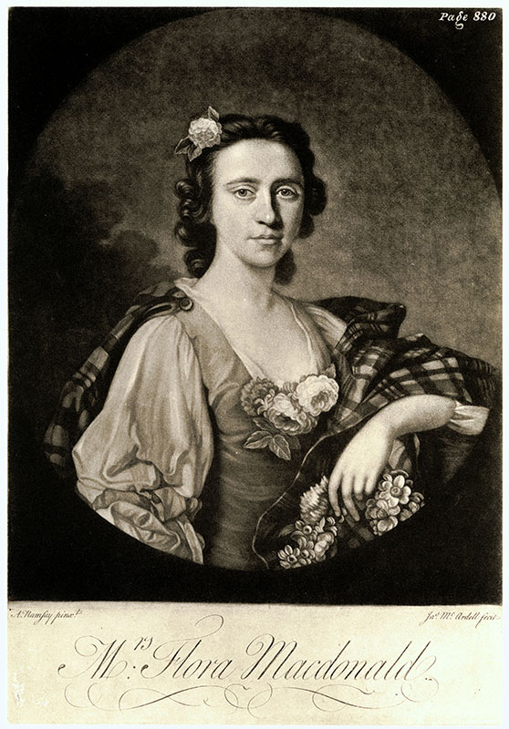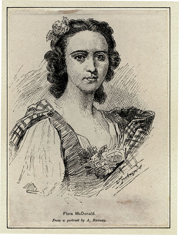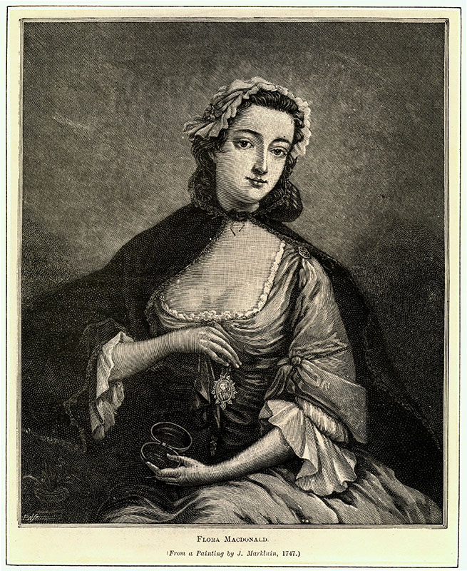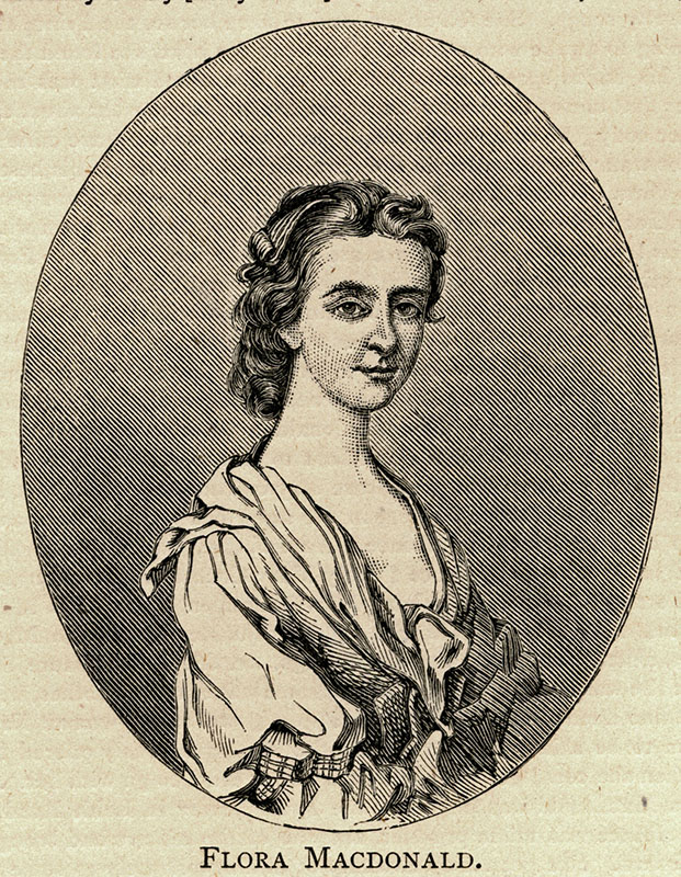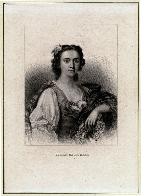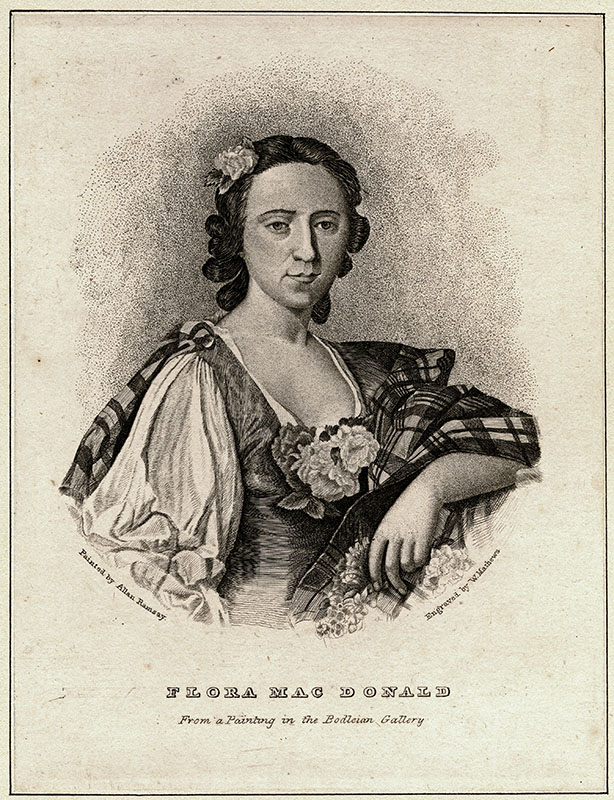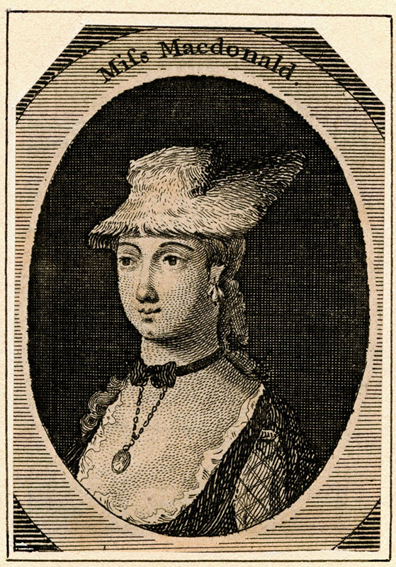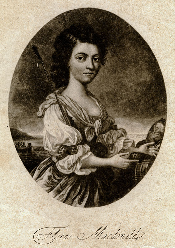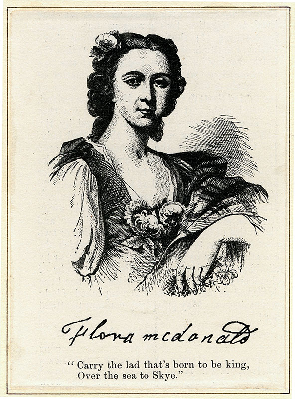 Jacobite heroine; from a plate containing Prince Charles Edward, Jenny Cameron and Flora; (p) The London Magazine; March 1747; 6.5 x 4.7 cms.