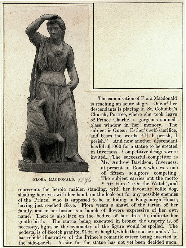 Jacobite heroine; prize-winning memorial statue; (a) A Davidson; 1896; 10.1 x 4.5 cms.