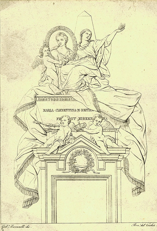 wife of Prince James Francis Edward, the Old Pretender; the funeral monument; (a) G Maverelli; (e) B del Vecchio; 26 x 19 cms.