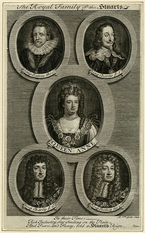 B2 289 - The Stuarts: Charles I, Charles II, James I, James II, Queen Anne