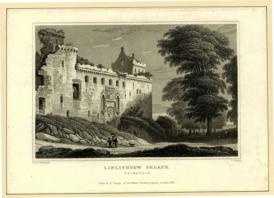 Prince Charles Edward Stuart here on 11 Sept 1745; (a) J P Neale; (e) S Lacey; (p) Jones & Co; 10.9 x 12.7 cms.