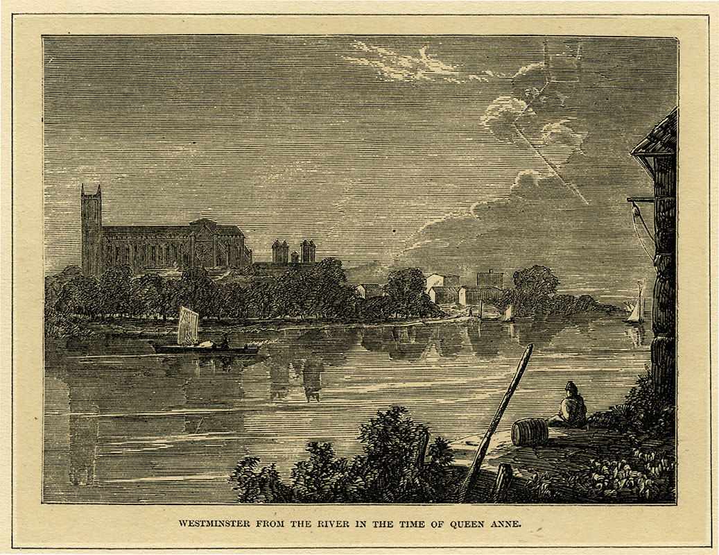 B3 188 - Westminster from the river in the time of Queen Anne, London