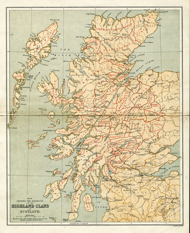 B3 191 - Map showing the districts of the Highland Clans of Scotland