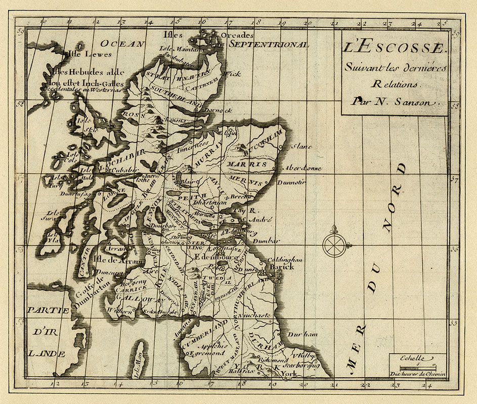 "L'Ecosse. Suivant les dernieres Relations"; (a) N Sanson; 16.4 x 19.2 cms.