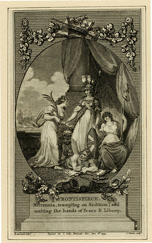 trampling on sedition and uniting the hands of Peace and Liberty; satire; (a) R Corbould; (e) C Warren; (p) C Cooke; 1793; 11.4 x 6.5 cms.