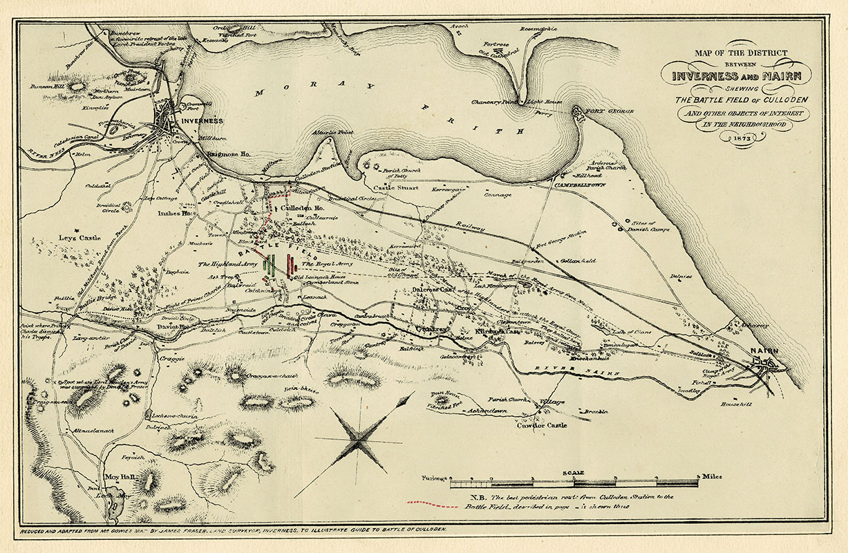 map of the area between Inverness and Nairn showing the battle-field of Culloden; (e) J Fraser, after Gowie; 1873; 15 x 24.2 cms.