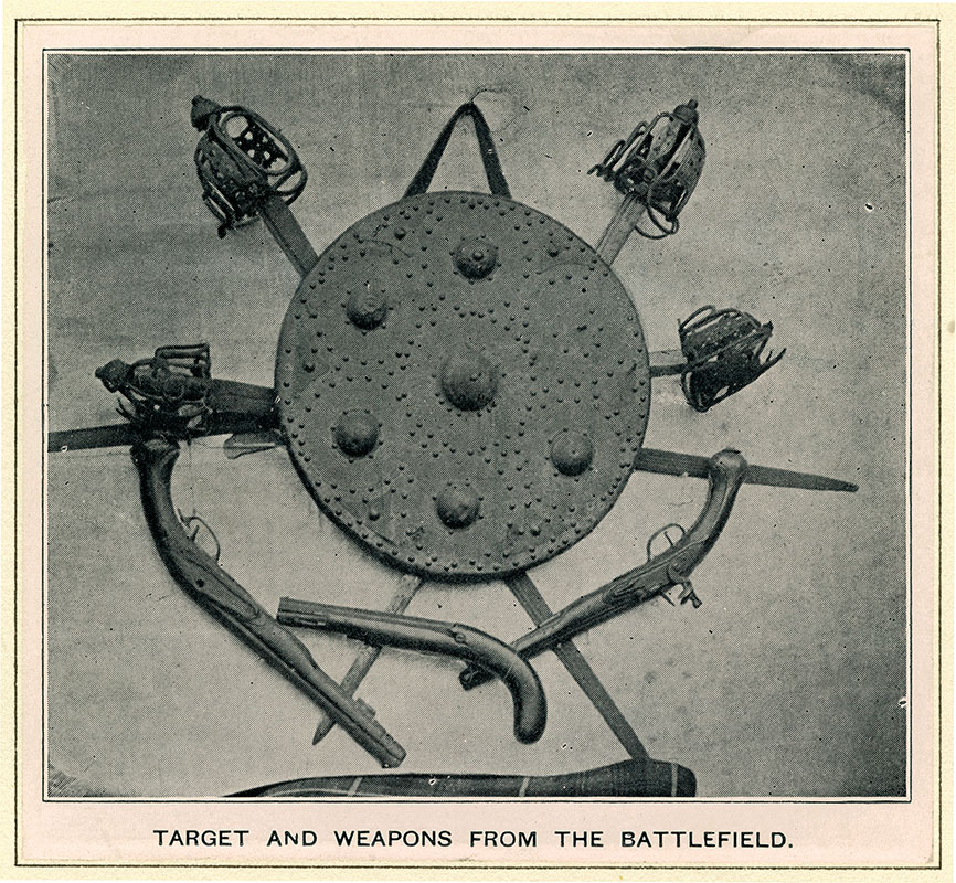 target and weapons from the battle-field; 9.8 x 11.3 cms.