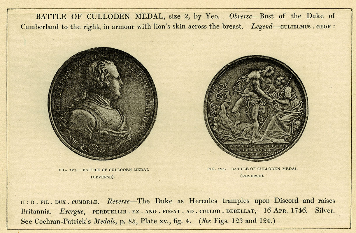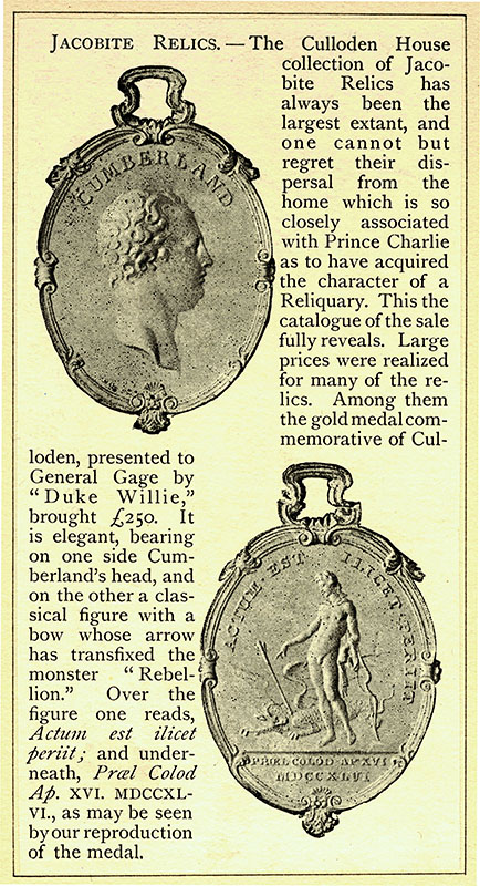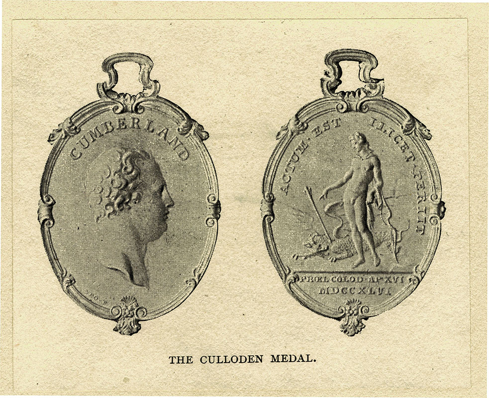 Jacobite relics, Culloden medal; 13 x 6.7 cms.