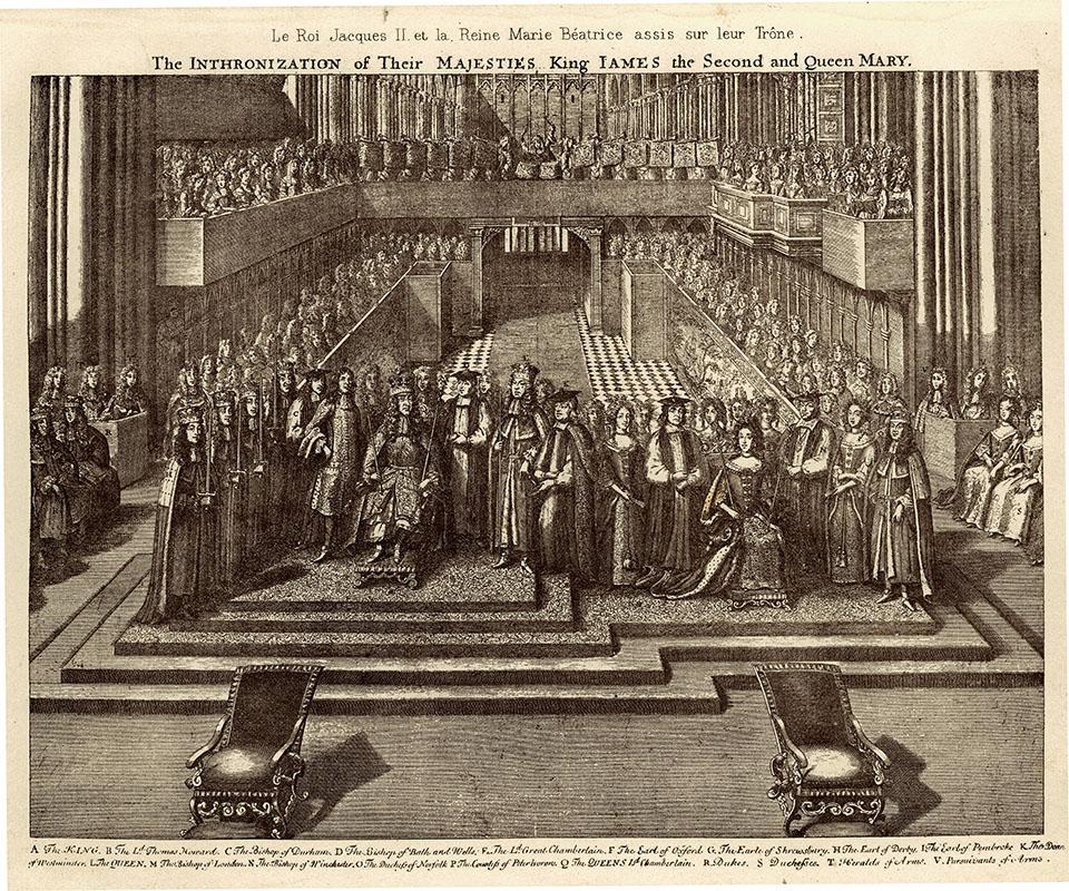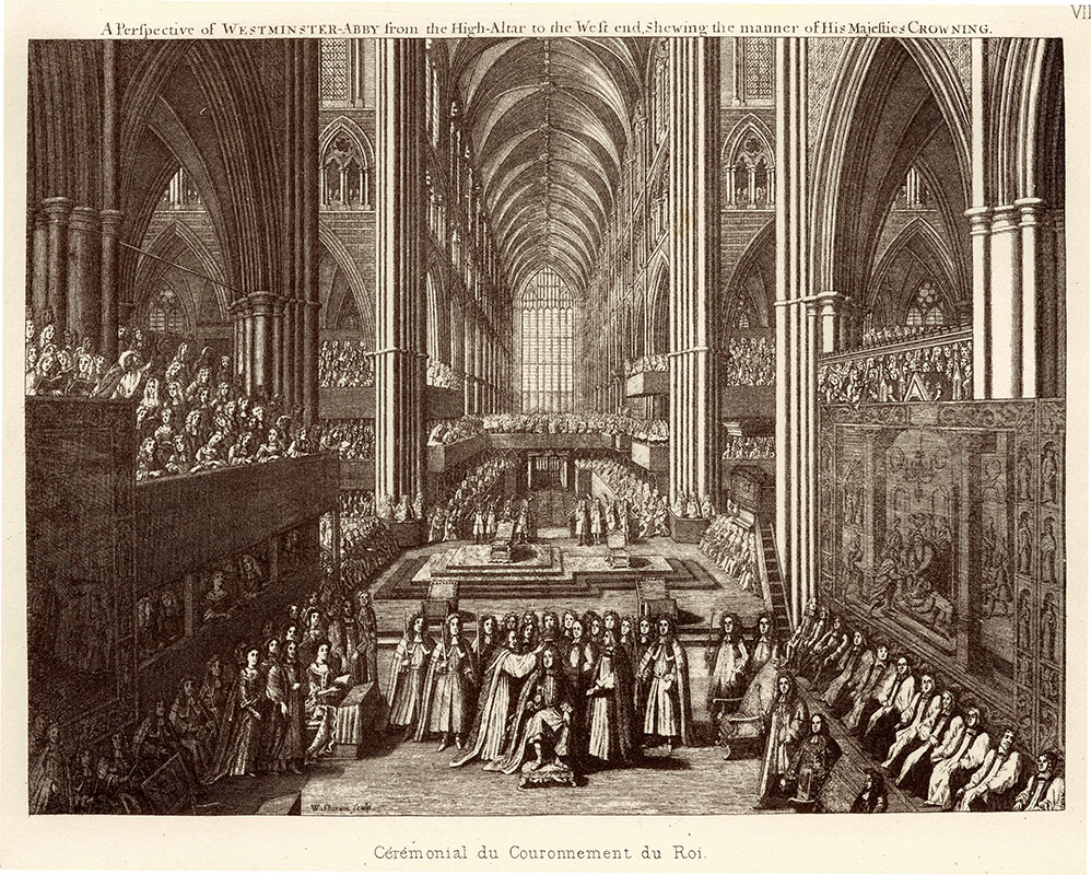 the enthronement of James and Mary, Westminster Abbey, 23 April 1685; 15.5 x 20.6 cms.
