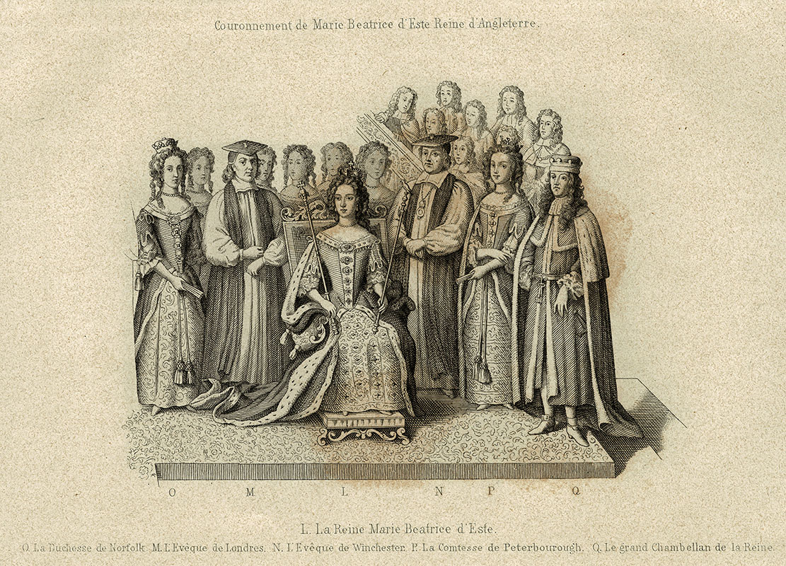 the crowning of Queen Mary, Westminster Abbey, 23 April 1685; 12.2 x 19 cms.