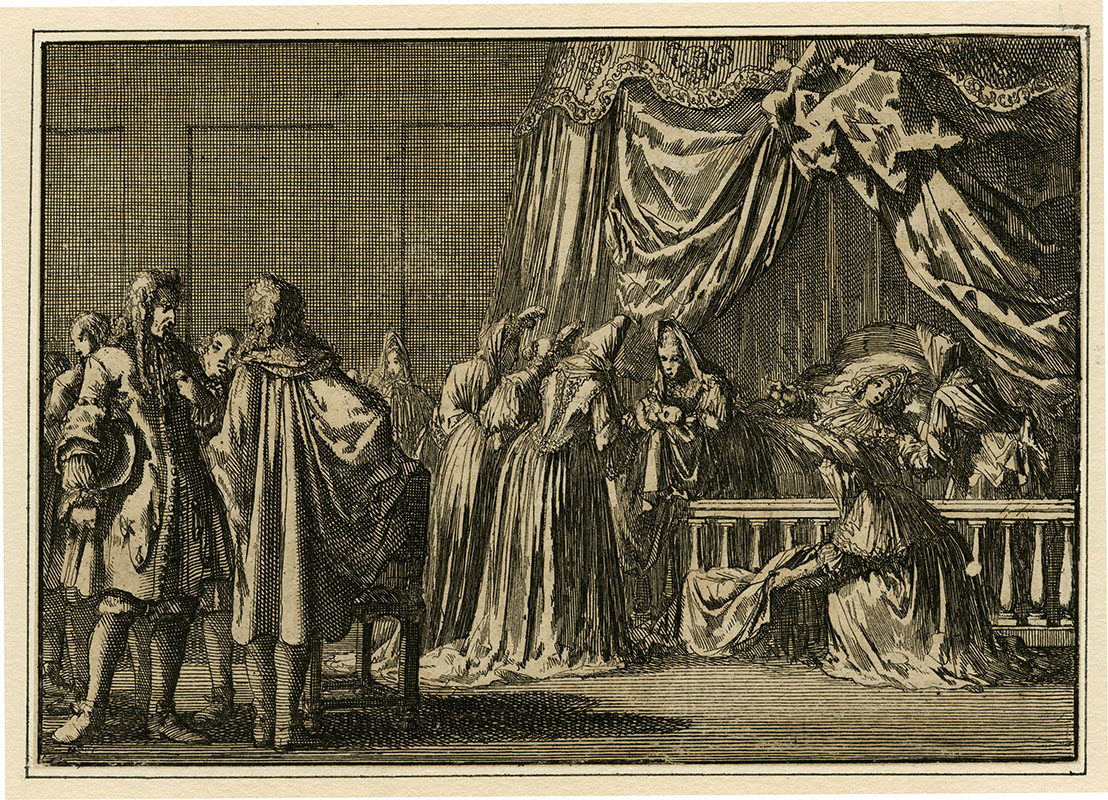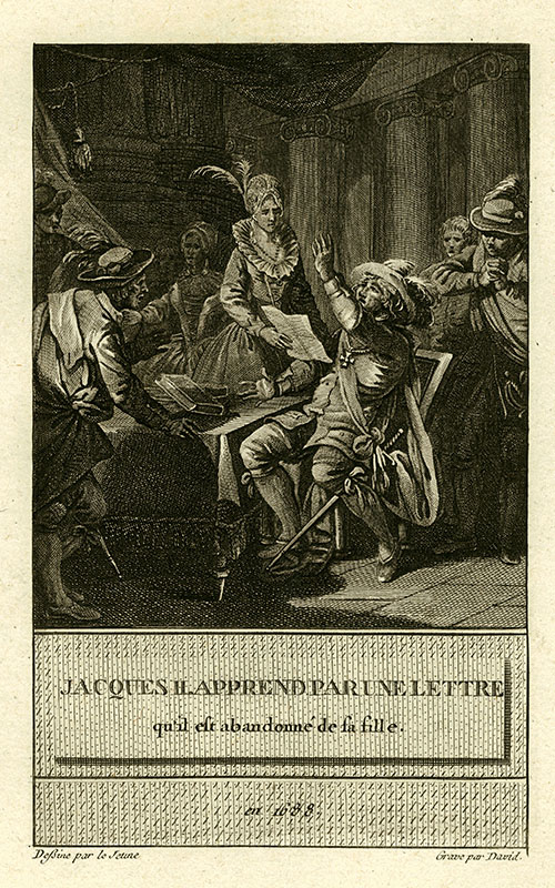 notified of his daughter Anne's flight to join William of Orange, 1688; (a) Le Jeune; (e) L David; 15 x 9.3 cms.