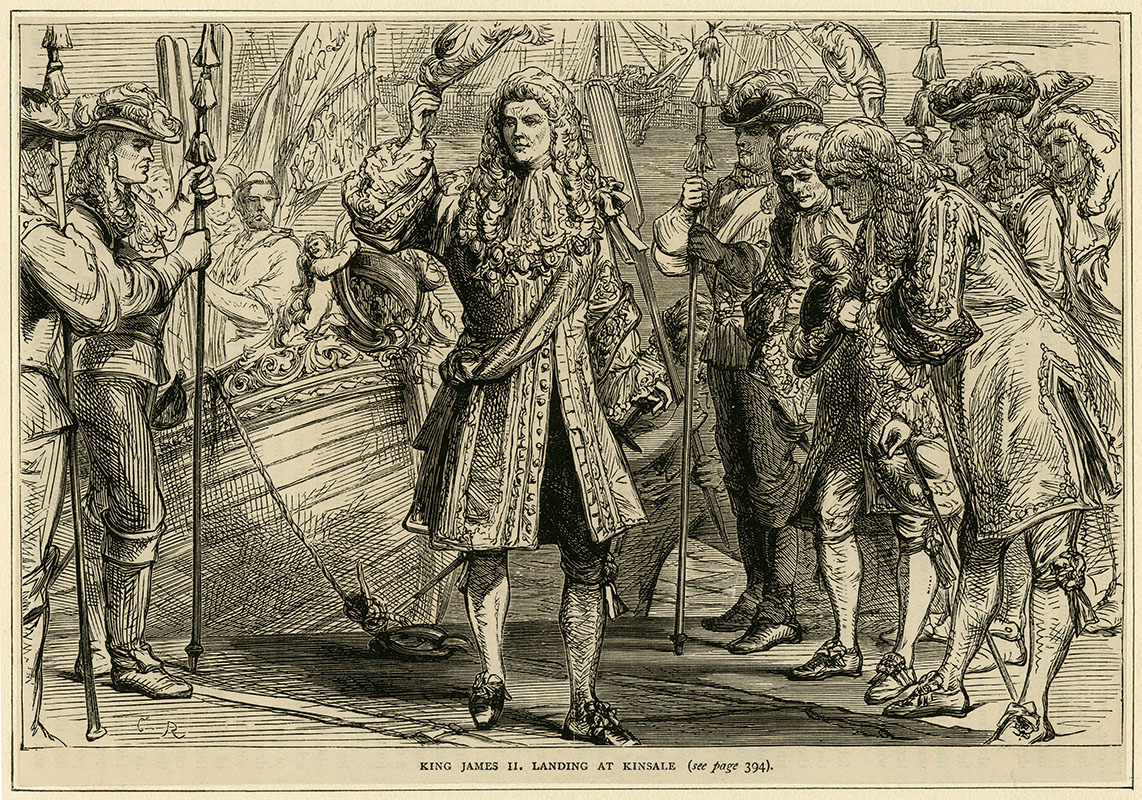 landing at Kinsale, Ireland, 12 March 1689; (e) C R; 14.3 x 21.7 cms.