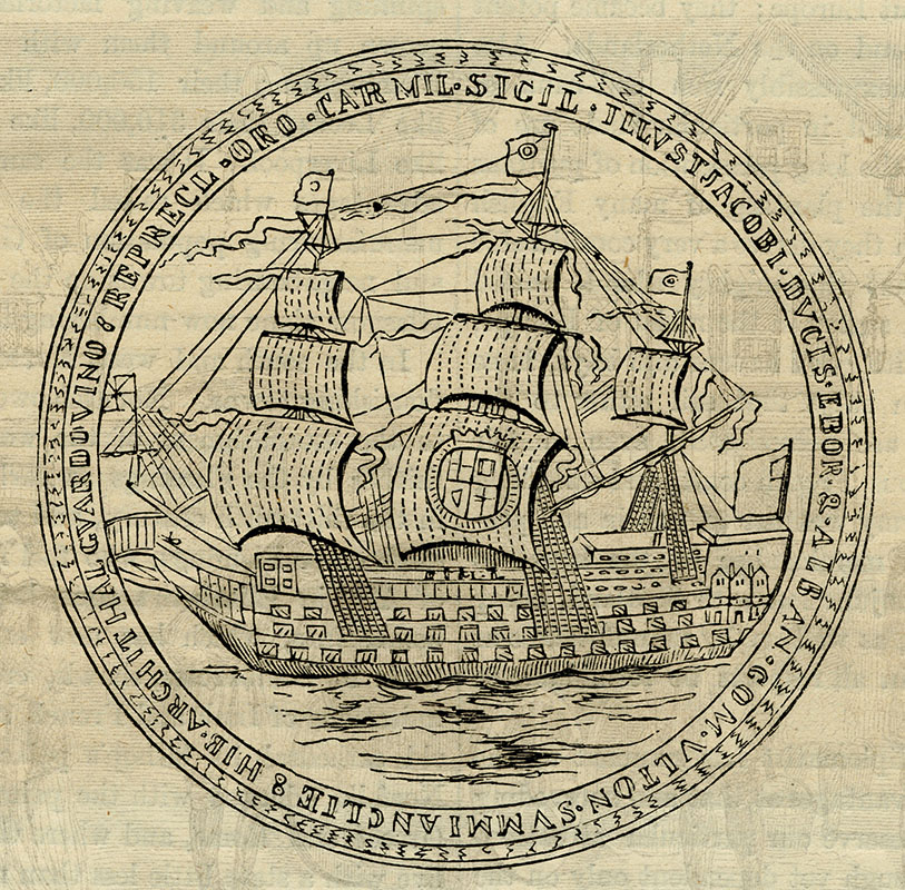 escaping from the sinking Gloucester frigate en route from England to Scotland, 6 May 1682; 10.3 x 14.9 cms.