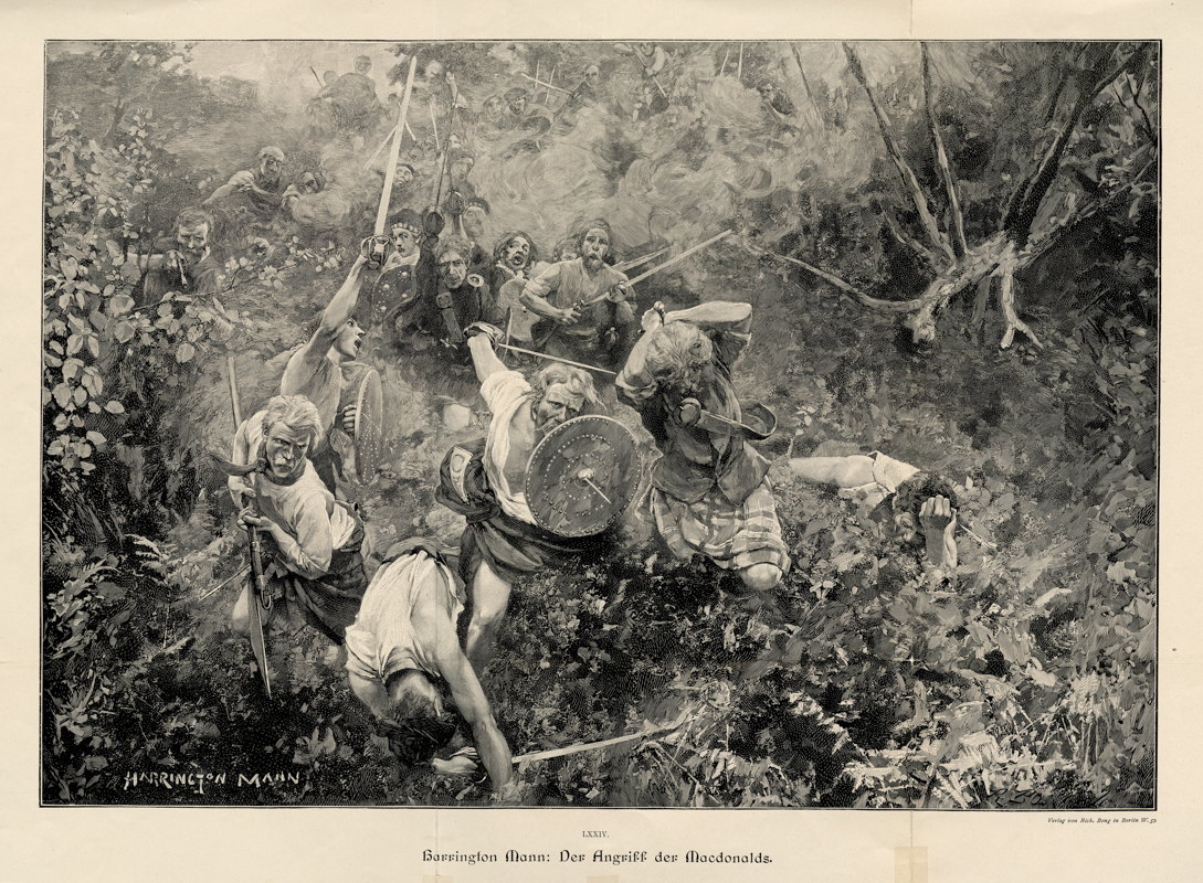 the Charge of the Macdonalds; (a) H Mann; 46.5 x 31.8 cms.