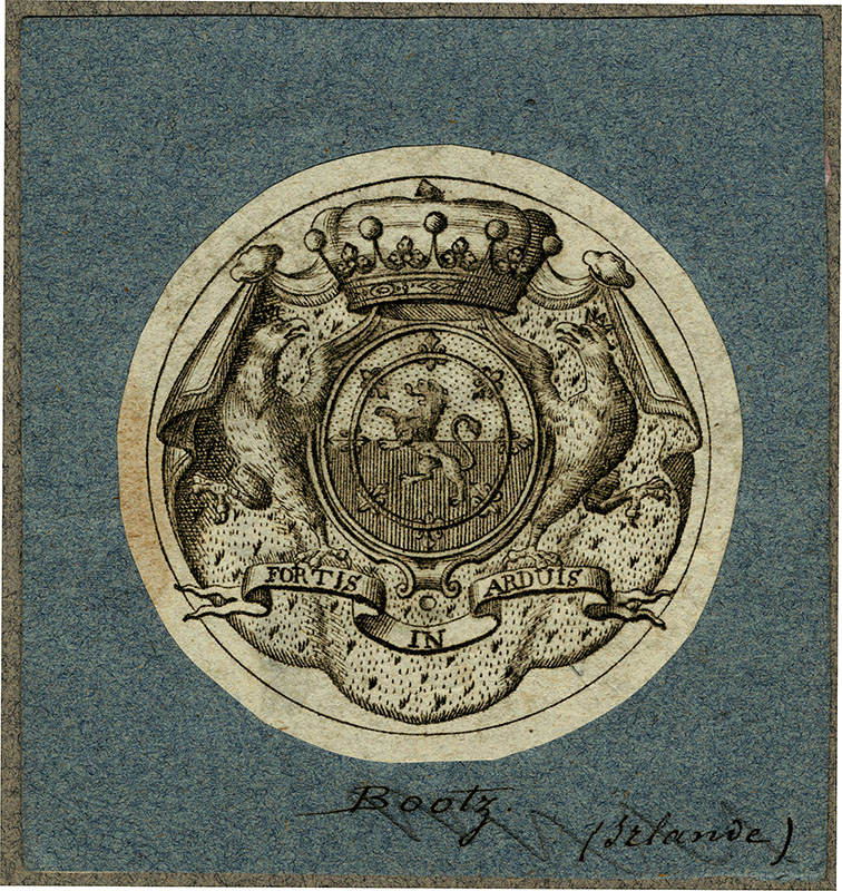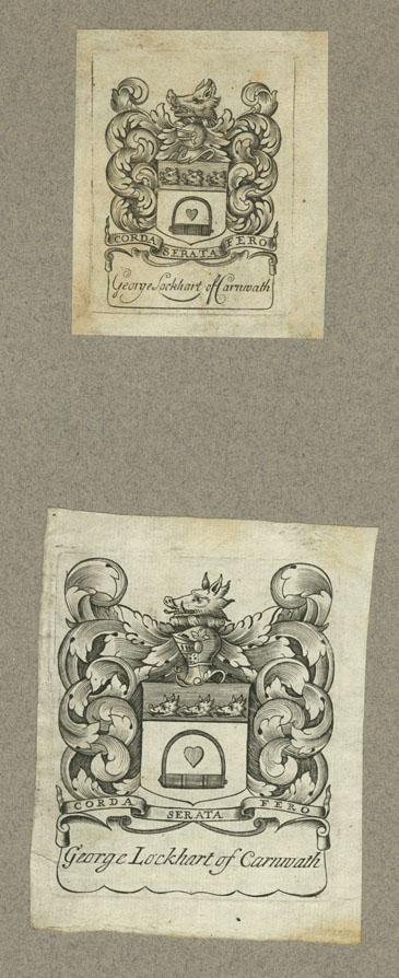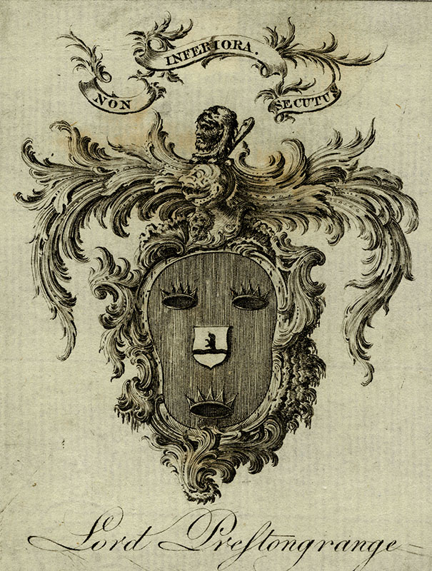 adjutant under Sir John Cope at Prestonpans, 1745; coat of arms on bookplate; 8.3 x 6.5 cms.