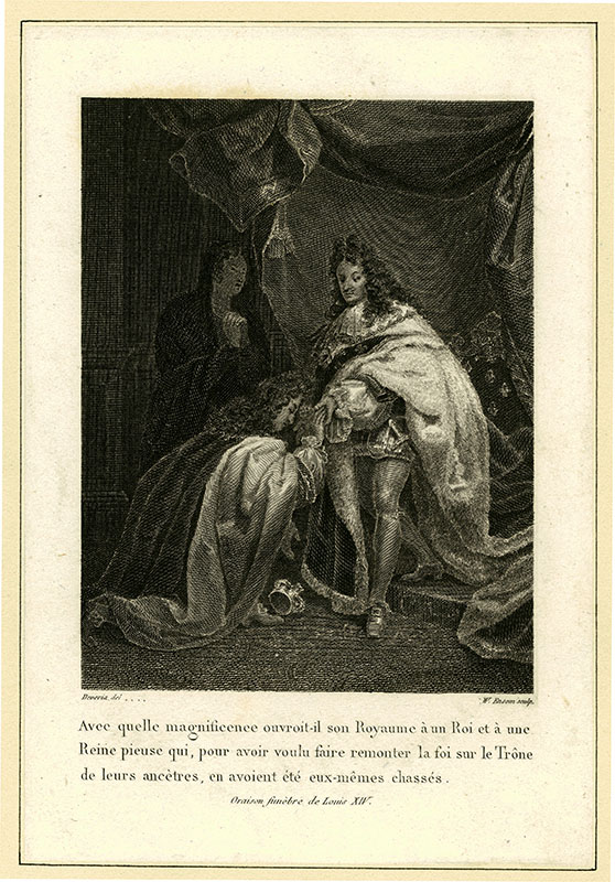reception of James and Queen Mary by Louis after their flight from England, 1688; (a) E Deveria; (e) W Ensom; 11.1 x 8.5 cms.
