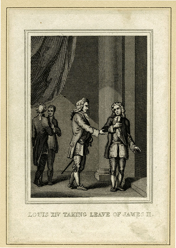 Louis taking leave of James as he departs for Ireland, 1689; 7.9 x 5.7 cms.