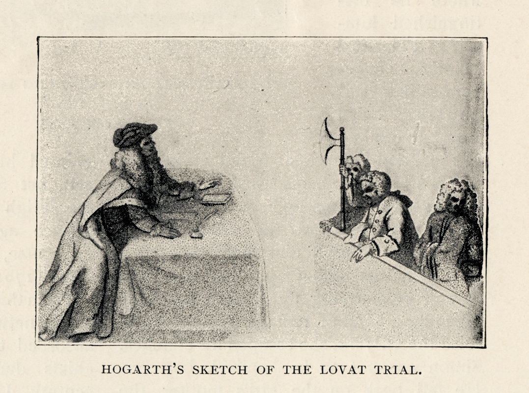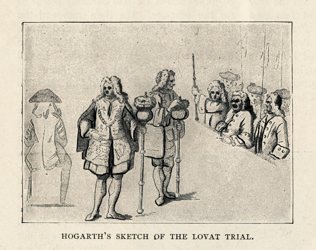 Jacobite intriguer, executed for high treason; sketch of the trial in Westminster Hall; (a) W Hogarth; 5.3 x 7.6 cms.