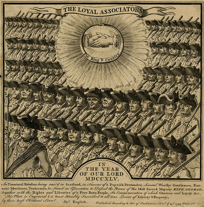 an association formed in defence of George II and his people against Prince Charles Edward, the Young Pretender and the Jacobite rebellion; (e) J English; 1745; 20.5 x 20.2 cms.