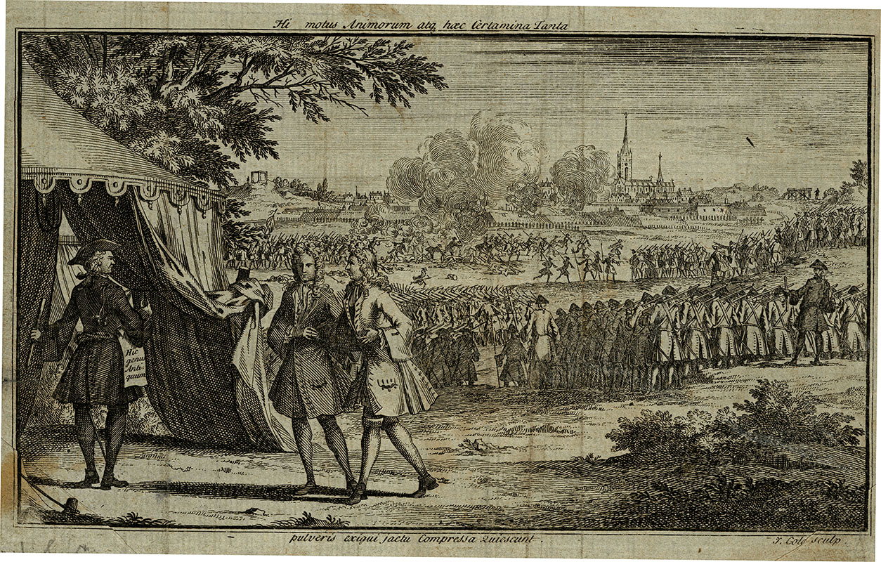 defeat of the French fleet by combined English and Dutch fleets; (a) T Weber; (e) O K Barean; 18.7 x 12.9 cms.