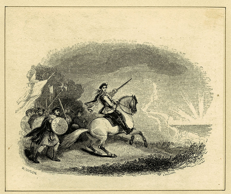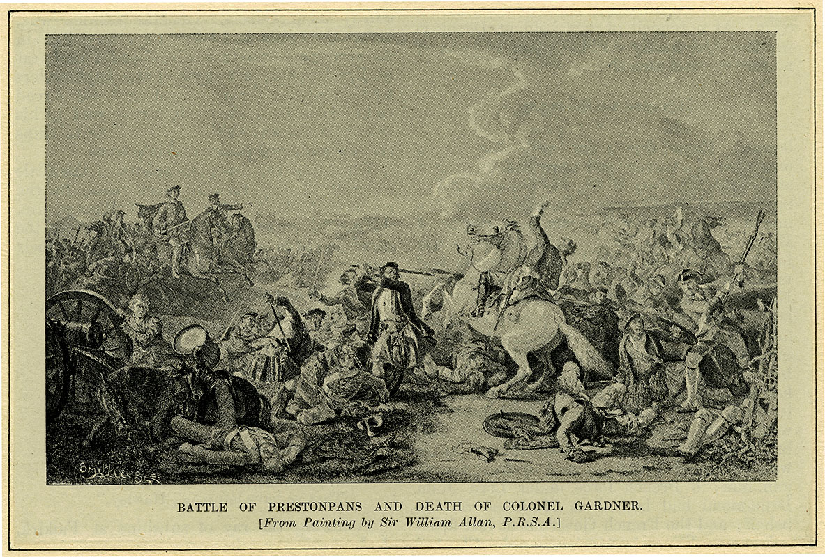 death of Colonel James Gardiner [Gardner], Colonel of dragoons, deserted by most of his men; (a) W Allan; 8.2 x 13.3 cms.