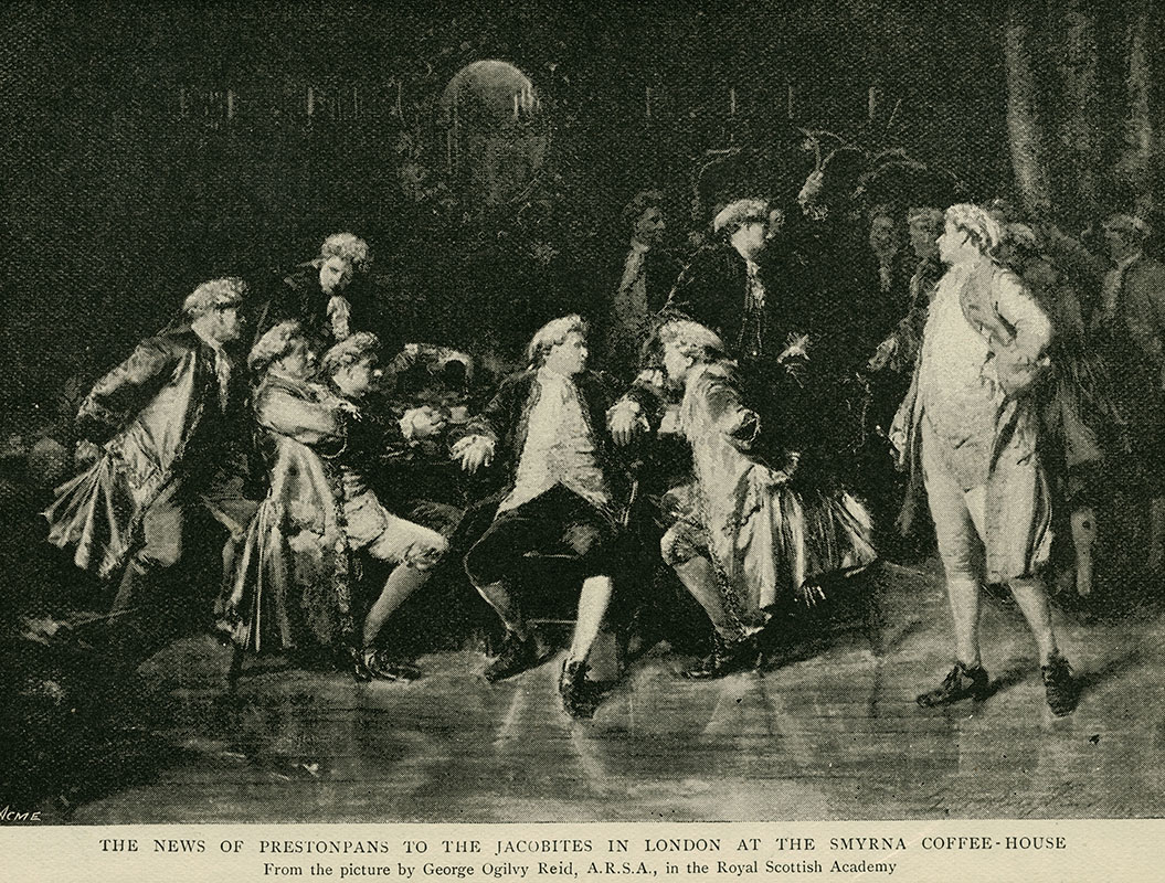 the news of Prestonpans is given to the Jacobites in London at the Smyrna Coffee-house; (a) G O Reid; 10.7 x 15.1 cms.