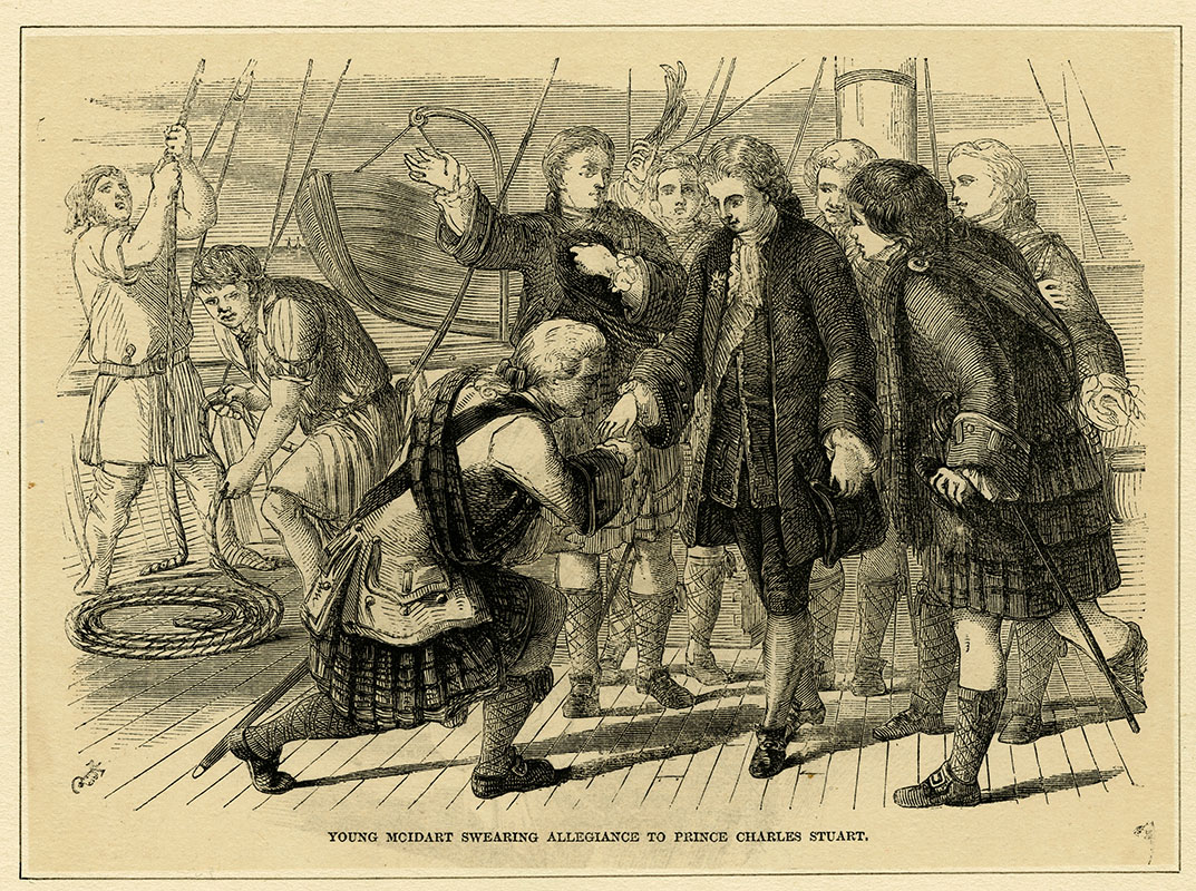 Ranald Macdonald, brother of Kinlochmoidart, swearing hid allegiance to Charles Edward aboard the Du Teillay, July 1745; (e) T Beech; 11.5 x 16.5 cms.