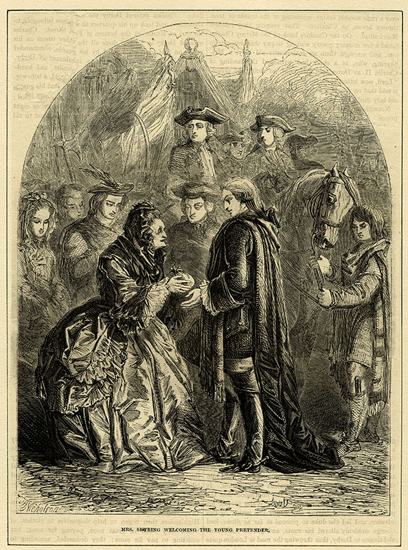 being welcomed to Cheshire by Mrs Skyring, a Jacobite supporter, December 1745; (a) T H Nicholson; (p) Cassell's Illustrated History of England Vol IV [p 511], Cassell, Petter & Galpin; [1865-74]; 20 x 15.1 cms.