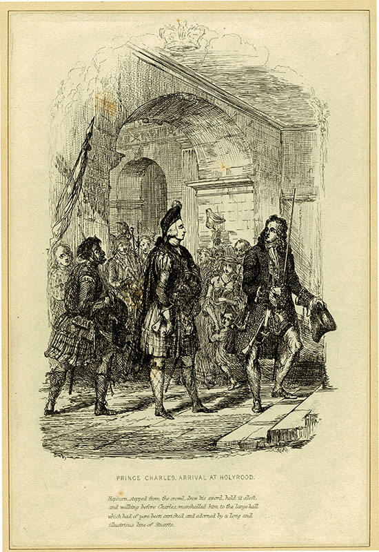 arrival at Holyrood House with Hepburn of Keith leading the way, 17 September 1745; (e) A E Ritchie; 1852; (p) J Ballantine's The Gaberlunzie's Wallet [p 138], Edinburgh; 1874; 13.7 x 9.3 cms.