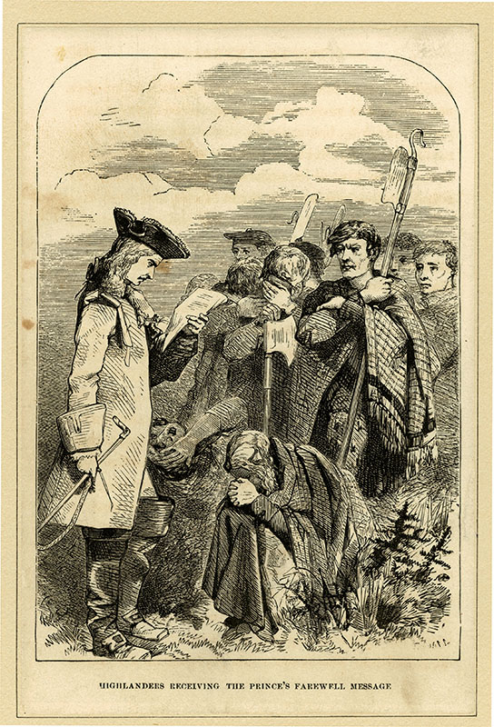 Highlanders receiving Charles Edward's farewell message at Ruthven, April 1746; (e) W Thomas; 12.5 x 8.8 cms.