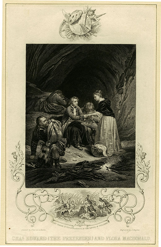 and Flora Macdonald (1722-90), with vignette of the Battle of Culloden, 1746; (a) P de la Roche; (e) J Rogers; 23.5 x 14.2 cms.