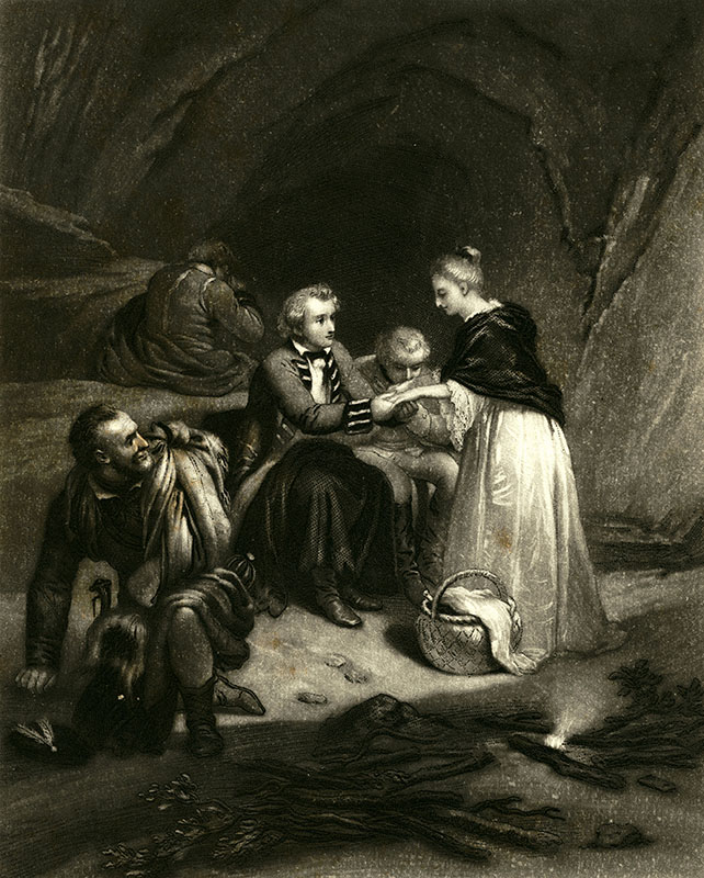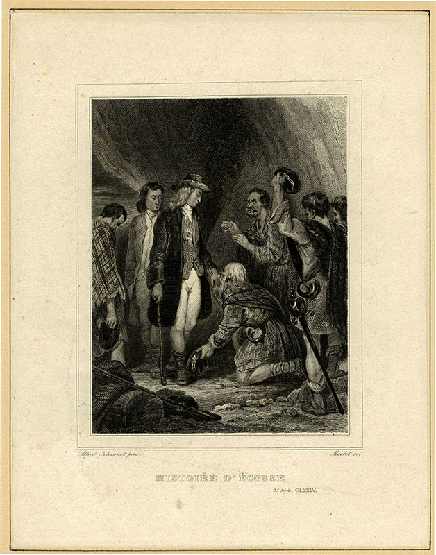 sheltered by the Highlanders after Culloden, 1746; (a) A Johannot; (e) Maulet; 10.4 x 8 cms.