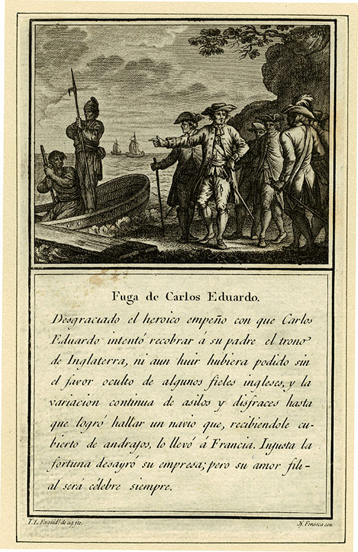 departure from Scotland for France, (Fuga de Carlos Eduardo), 20 September 1746; (a) T L Enguids; (e) H Fonseca; 6.6 x 8.1 cms.