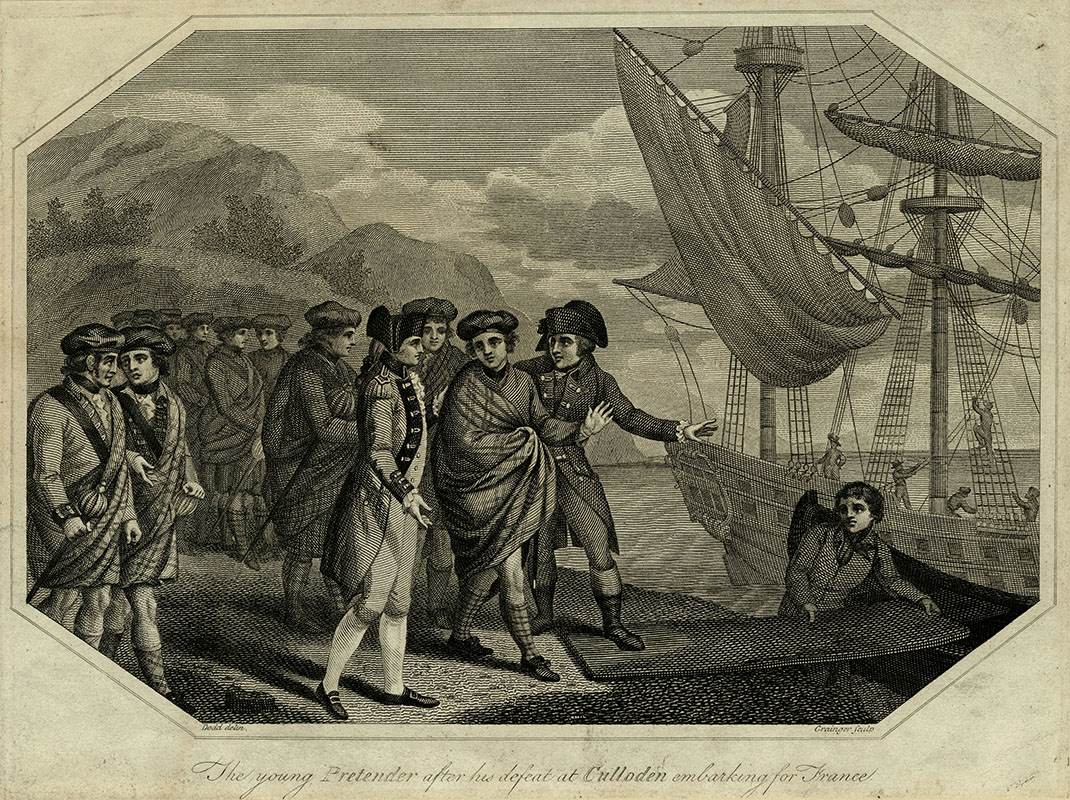 departure from Scotland for France, 20 September 1746; (a) R Smirke; 10.5 x 8 cms.