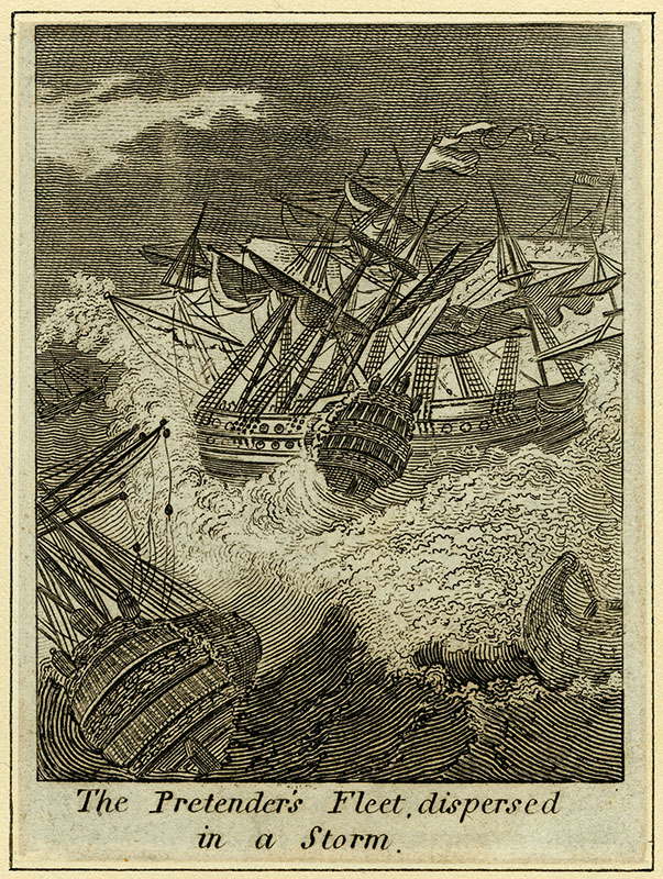 his fleet dispersed in a storm, North Sea, 1708; 8.7 x 6.6 cms.